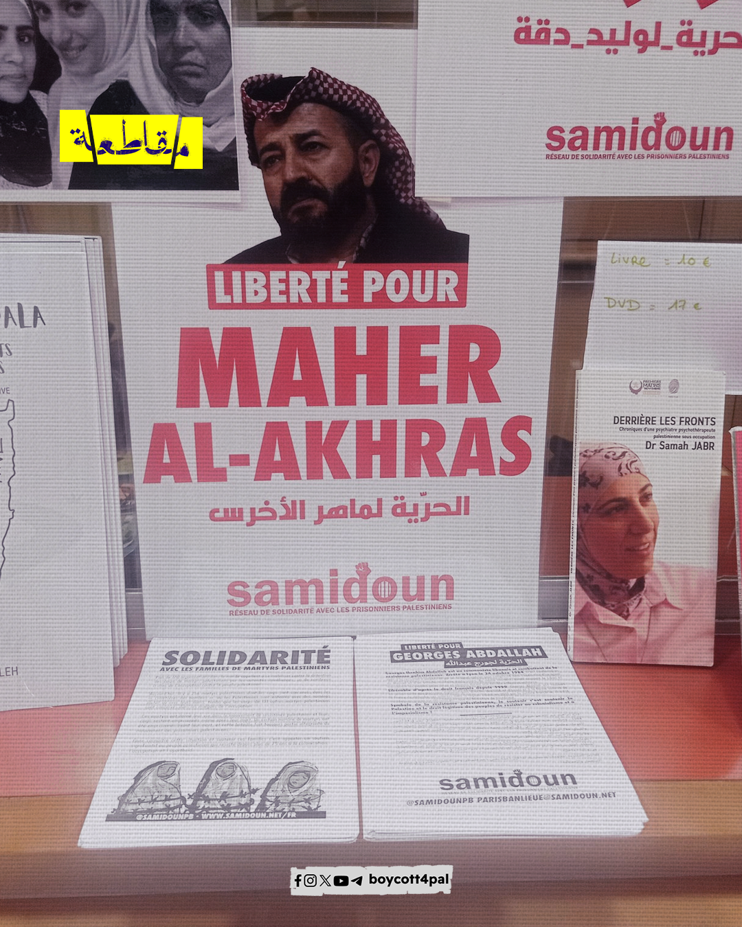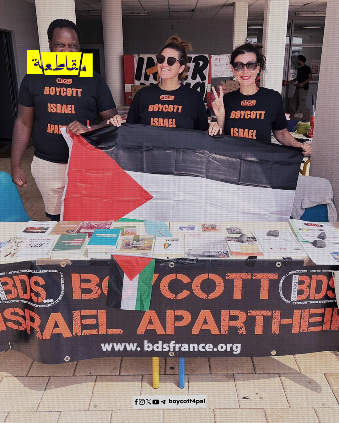 أعلنت حركة المقاطعة في فرنسا عن نجاح الفعاليات التضامنية التي أقامتها في الجامعة الصيفية للحركات الاجتماعية والتضامن في "بوبيني" في الفترة من 23 إلى 27 أغسطس المنصرم، والتي تناولت فيها أهمية المقاطعة لاسيما التجارية والثقافية كأداة لدعم المقاومة بفلسطين من أجل التحرير.