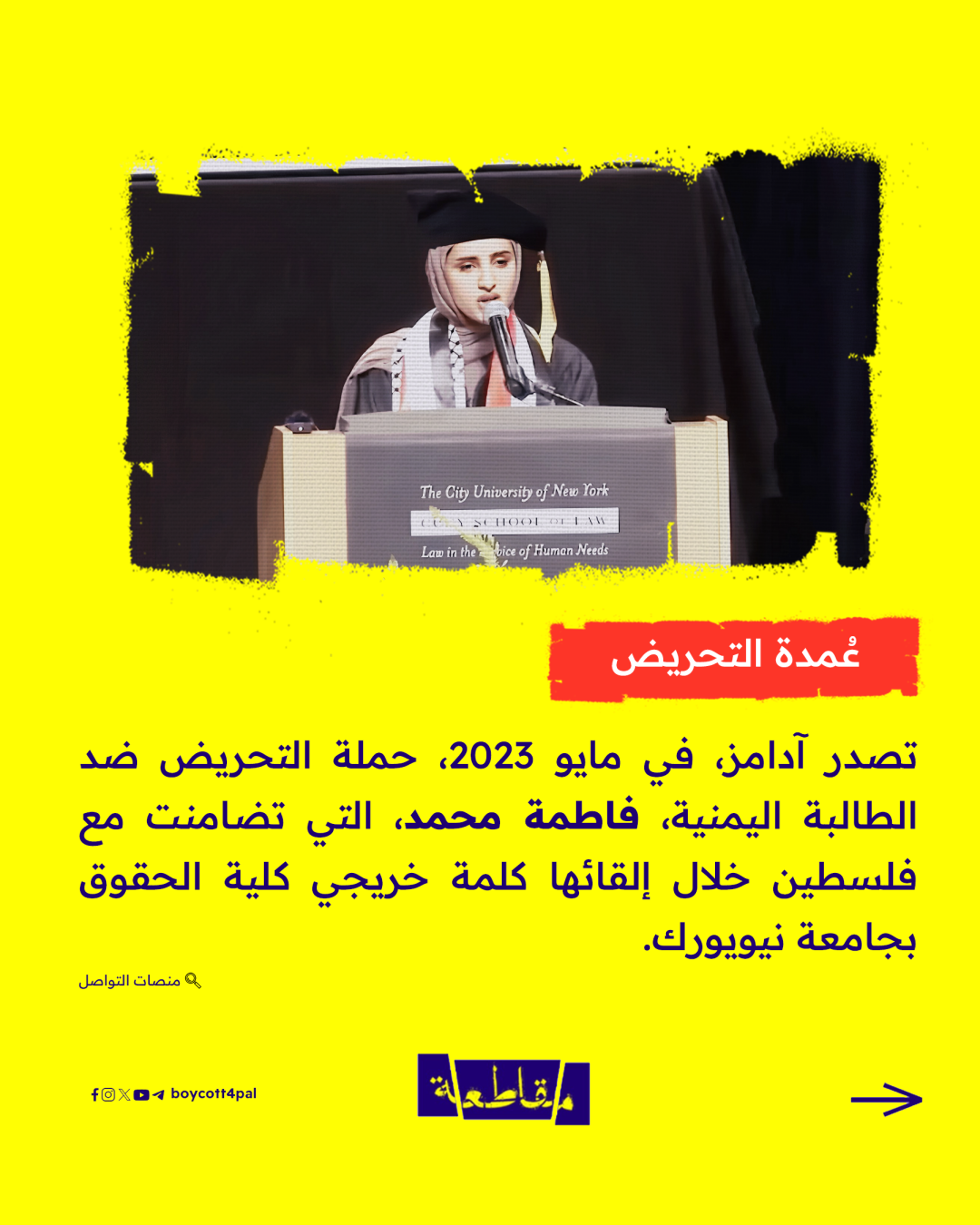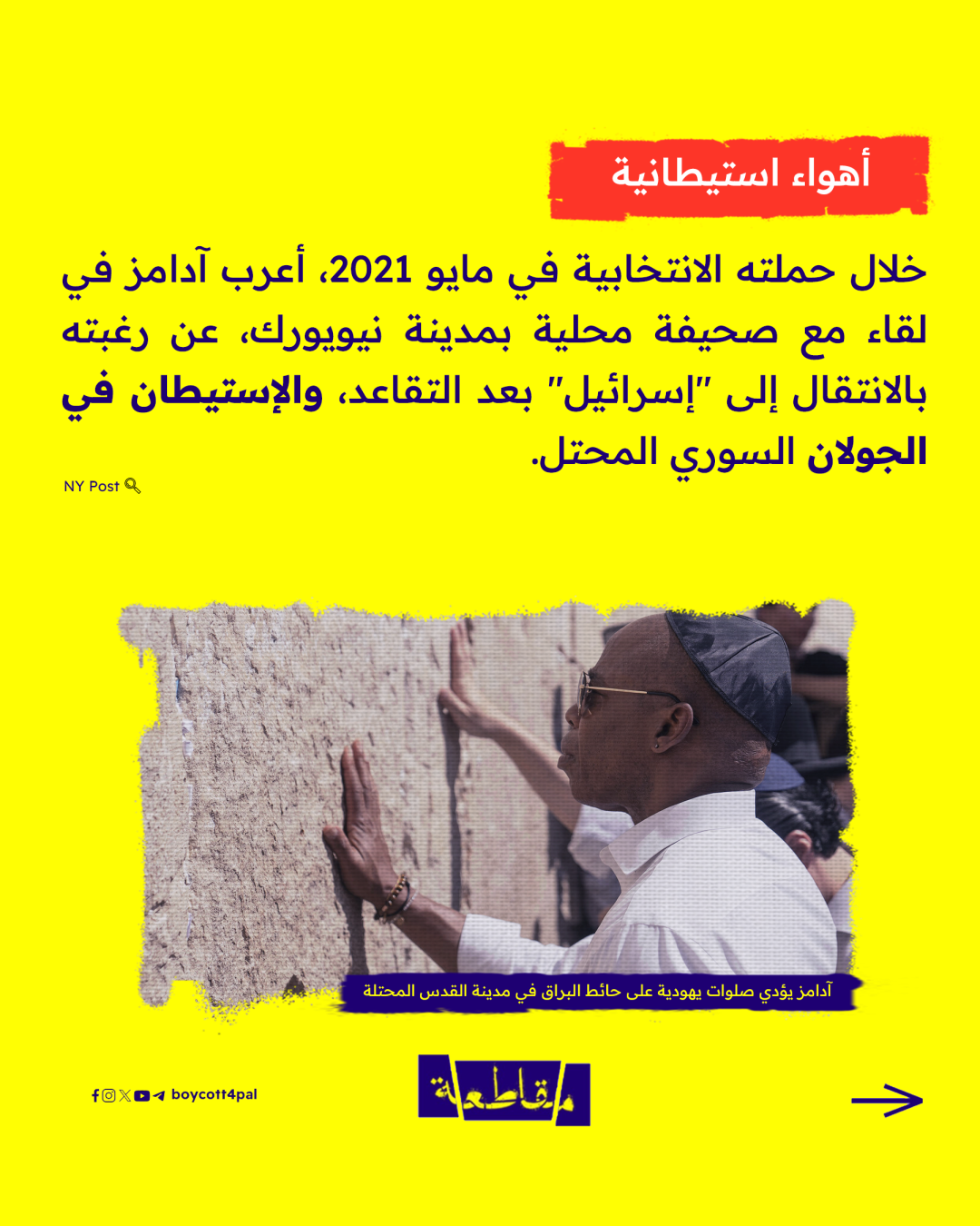 ما لا يعرفه الكثيرون، هو أن آدامز من أشد المناصرين لكيان الاحتلال وجرائمه في فلسطين.