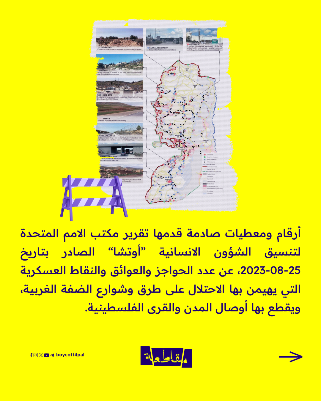 أرقام صادمة قدمها تقرير منظمة “أوتشا” الأخير قبل أيام، عن أعداد وأنماط هيمنة الاحتلال على حركة الفلسطينيين.. تعرف عليها الآن