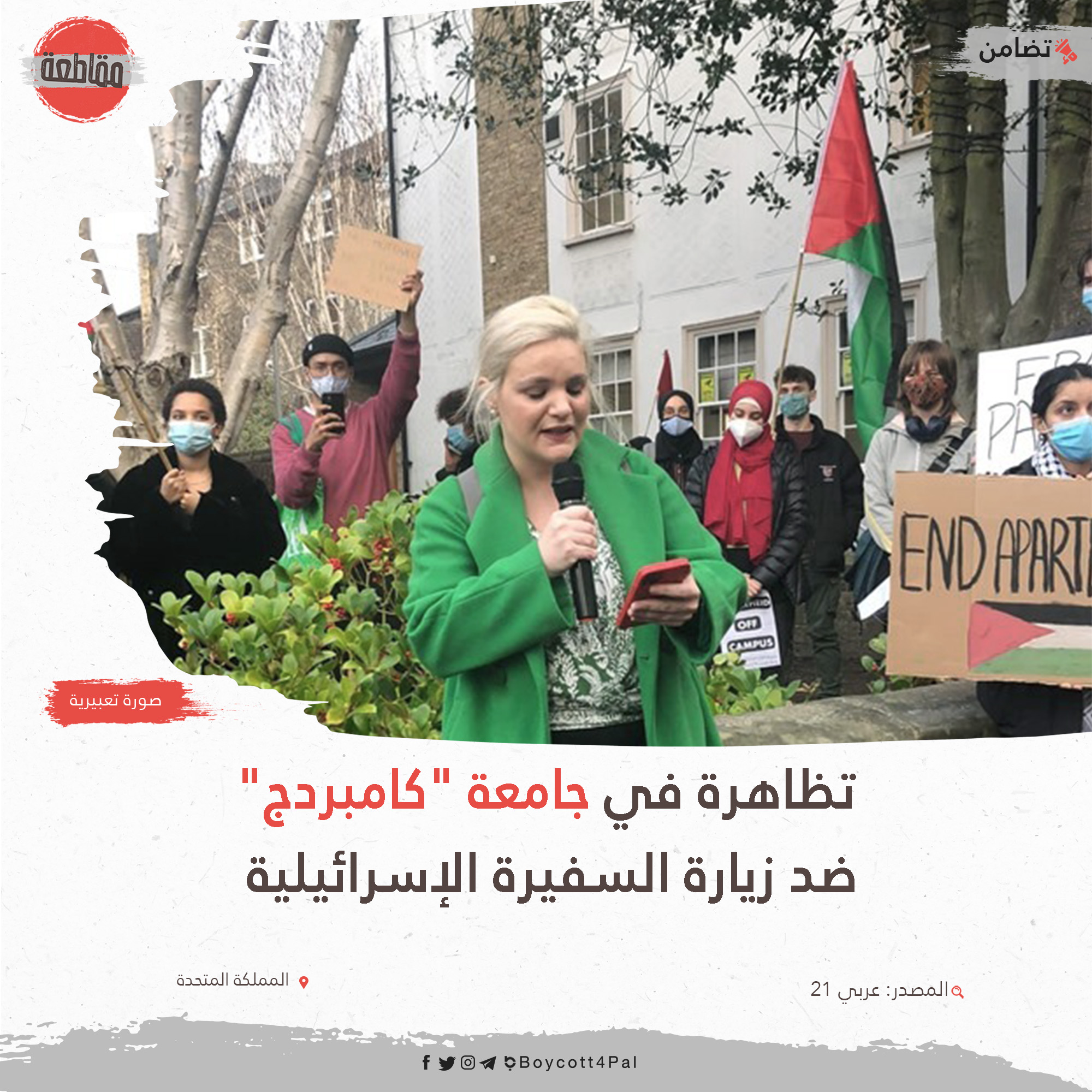 تظاهر العشرات من طلاب جامعة "كامبردج" البريطانية، احتجاجًا على زيارة السفيرة الإسرائيلية بالمملكة المتحدة تسيبي حوتوفلي للجامعة.