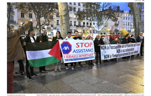 جددت حركة المقاطعة دعوتها لمواصلة التحرك ضدّ شركة "أكسا" للتأمين، بسبب ضلوعها مع الاحتلال من خلال استثماراتها في البنوك الإسرائيلية التي تمول بناء المستوطنات على الأراضي المحتلة.
