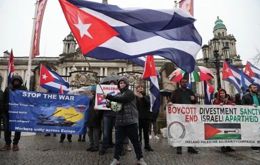تظاهر عشرات النشطاء الداعمين للقضية الفلسطينية في العاصمة الأيرلندية دبلن، احتجاجًا على زيارة الرئيس الأمريكي، جو بايدن، حيث نقلوا رسالة مفادها أن الولايات المتحدة متواطئة في العدوان على الفلسطينيين من خلال توفير الأموال والدعم للفصل العنصري.