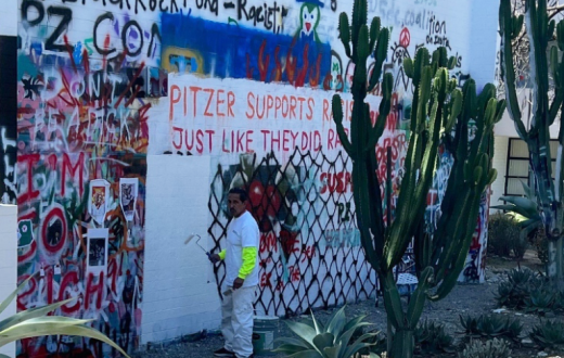 نظم طلاب من أجل العدالة في فلسطين بكلية كليرمونت أول أمس، فعالية لرسم جدارية على كلية بيتزر، إذ جاءت الفعالية بعد قيام إدارة الكلية بإزالة الأعمال الفنية والرسائل المؤيدة للفلسطينيين التي كانت مرسومة على الجدار في وقت سابق.