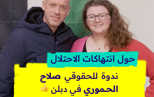 نظمت حملة التضامن الأيرلندي الفلسطيني ندوة حول الفصل العنصري الإسرائيلي في الأراضي المحتلة، حيث تحدث الحقوقي المبعد صلاح الحموري عن واقع الانتهاكات والتعذيب والقمع الإسرائيلي بحق الفلسطينيين، وشارك في الفعالية العشرات من المتضامنين مع القضية الفلسطينية ومناهضي الاحتلال.