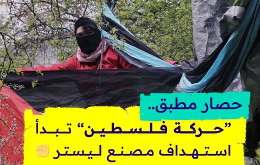 نظّم أعضاء حركة فلسطين فعالية احتجاجية عبر تسلّق الأشجار خلف مصنع شركة “إلبيت سيستميز” الإسرائيلية في مدينة ليستر مدة 12 ساعة، وذلك ضمن الفعاليات التي أطلقتها “الحركة” تمهيدًا للخطوات التصعيدية التي ستبدأ في الأول من مايو المقبل، لإجبار المصنع على الإغلاق والإخلاء.