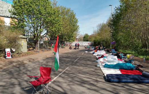 ألقت الشرطة البريطانية القبض على ست نساء بعد أن نفّذ متظاهرون مؤيدون لفلسطين احتجاجًا أمام مصنع UAV Tactical Systems على أطراف مدينة ليستر صباح أمس الثلاثاء، 23 سبتمبر. وقع الحادث في مجمع ميريديان للأ