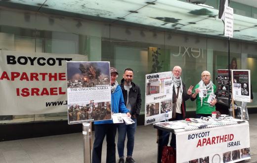 نظّمت حملة التضامن الأيرلندي الفلسطيني طاولة معلومات في شارع هنري بالعاصمة دبلن، للتوعية والتثقيف بنظام الفصل العنصري الإسرائيلي وانتهاكاته في الأراضي الفلسطينية، إضافةً للتوقيع على عريضة للتعهد بإنهاء النظام.