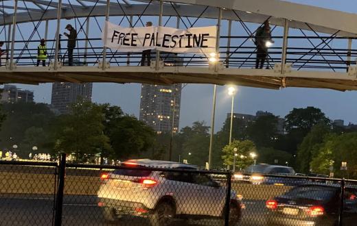 نظّم عشرات المتضامنين مع القضية الفلسطينية، وأبناء الجالية الفلسطينية مظاهرة احتجاجية على شاطئ نورث أفينيو في شيكاغو، لتعطيل عرضٍ للطائرات بدون طيار ينظمه الصندوق القومي اليهودي بمناسبة الذكرى الـ75 “لتأسيس” الاحتلال، في ذكرى نكبة الشعب الفلسطيني.