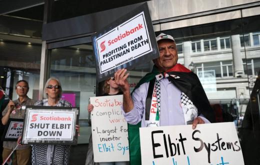 دعا التحالف الكندي من أجل فلسطين، للعمل ضدّ "سكوتيابنك” الكندي، لإجباره على سحب استثماراته البالغة 500 مليون دولار من شركة الأسلحة الإسرائيلية “إلبيت سيستمز”، مشيرةً إلى أن “البنك” يعتبر أكبر مستثمرفي الشركة والمزوّد الأول لجيش الاحتلال بالعتاد والذخائر العسكرية.