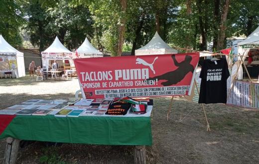 أقامت حركة المقاطعة في منطقة بروفنس الفرنسية، طاولة معلومات حول شركة “بوما”، وذلك ضمن فعاليات اليوم العالمي للعمل ضدّ الشركة، حتى إنهاء تواطؤها مع كيان الاحتلال الإسرائيلي، حيث تتواصل الدعوات ضدّ الشركة الألمانية منذ عام 2018.