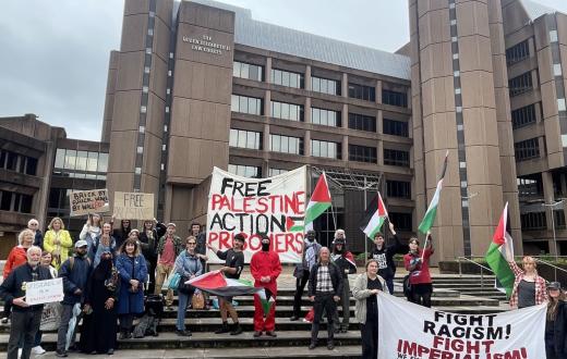بدأت محكمة وستمنستر الجزئية في لندن يوم الأربعاء 15 أكتوبر، بمحاكمة نحو 30 ناشطًا لاعلان تضامنهم مع "حركة فلسطين”، في أحدث خطوات الحكومة البريطانية لقمع التضامن مع فلسطين بعد حظر الحركة في يوليو/تموز