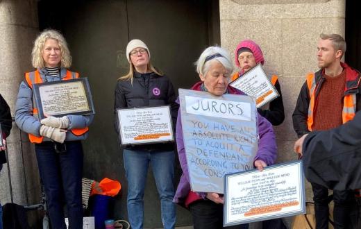 دعت حركة فلسطين إلى الاحتجاج ضد نظام القضاء البريطاني، رفضًا لتهديده هيئة المحلفين بصورة تقوض الحق في الاحتجاج، كما نددت الحركة بازدواجية أحكامه في التعامل مع النشطاء في ظل تسهيله معاملات احتجاجات التغير المناخي، وتصعيب محاكمات نشطاء العمل من أجل فلسطين.