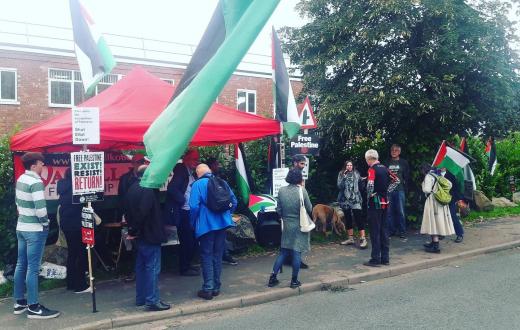 نظّم نشطاء حركة فلسطين وعدد من أنصار القضية الفلسطينية وقفة احتجاجية أمام مصنع شركة “إلبيت سيستمز” للأسلحة الإسرائيلية في شينستون، احتجاجًا على التدخل الإسرائيلي في جلسات محاكمة نشطاء الحركة في المحاكم البريطانية، وللتنديد بضلوع الشركة في الجرائم التي ينفذها الاحتلال بحق الفلسطينيين.