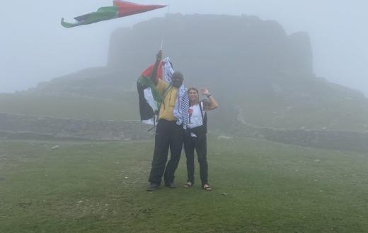 رفع ناشطان من حركة فلسطين علم فلسطين أعلى قمة تلّة "ويلز مويل فاما" إلى جانب لافتة تطالب بوقف الجرائم وقتل الفلسطينيين، وذلك ضمن حملة لجمع التبرعات للعمل من أجل فلسطين، يأتي ذلك في ظل مواصلة الحركة عملها ضدّ شركات الأسلحة الإسرائيلية في المملكة المتحدة.
