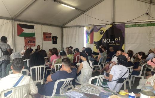 شارك الناشط الحقوقي الفلسطيني صلاح الحموري في جلسة نقاشية بعنوان "عنف الشرطة ومنطق الفصل العنصري, هل إسرائيل نموذجًا لفرنسا؟"، ضمن الفعاليات الختامية لزاوية حركة المقاطعة في فرنسا بمهرجان الإنسانية يوم أمس، بمشاركة النشطاء عمر سلوتي ومنيرة مون.