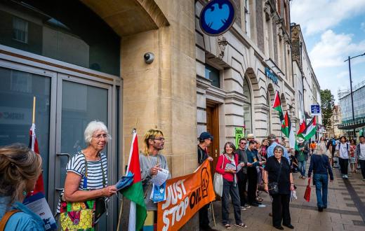 جددت حملة التضامن مع فلسطين دعوتها للعمل ضدّ بنك “باركليز” المتورط في دعم الاحتلال من خلال استثماره في شركات متعاونة مع نظام الفصل العنصري الإسرائيلي، داعيةً للتحرك والعمل ضدّ البنك يوم 23 سبتمبر الجاري، مشيرةً إلى أن العمل سيكون في أكثر من 25 موقعًا بالمملكة المتحدة.