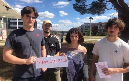 نظّم نشطاء من تجمّع القبضة المرفوعة وقفة تضامنية في جامعة “ميريل” دعمًا وإسنادًا للناشط الفلسطيني زيد عبد الناصر، الذي يواجه تهديدًا بالترحيل وسحب إقامته من قبل السلطات الألمانية على خلفية انخراطه في العمل الفلسطيني.