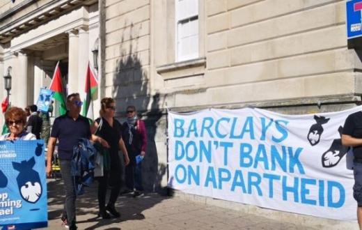 تتواصل الاحتجاجات الإلكترونية والميدانية ضد تواطؤ بنك باركليز مع الاحتلال عبر استثماره في الشركات التي تزود جيشه بالأسلحة والمعدات القتالية، حيث شهدت أفرع البنك في بريطانيا تجمعات ووقفات مطالبة بوقف التواطؤ مع الاحتلال، شملت الاحتجاجات نحو 25 فرعًا منتشرين في المملكة المتحدة.