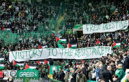 رفعت جماهير نادي سلتيك لافتات وأعلام فلسطين خلال مباراة جمعته يوم أمس مع كليمارنوك ضمن مباريات الدوري الإسكتلندي الممتاز، تضامنًا مع الشعب الفلسطيني في ظل العدوان الإسرائيلي المتواصل على قطاع غزة.