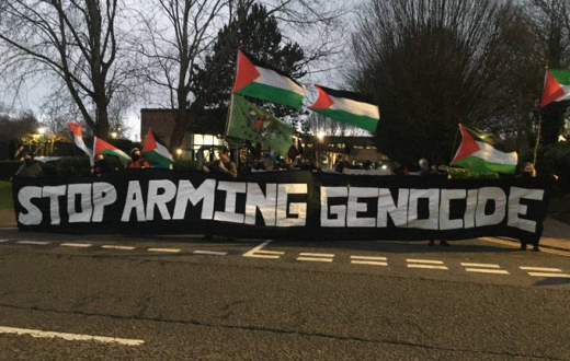 حاصر نشطاء من حركة “بال أكشن” الداعمة لفلسطين، المقر الرئيسي لشركة إلبيت المتخصصة في إنتاج محركات الطائرات بدون طيار التابعة للاحتلال، داعين لوقف تسليح الإبادة الجماعية في غزة، حيث تزود الشركة الاحتلال بـ 85% من أسطول الطائرات بدون طيار ومعداتها العسكرية البرية.