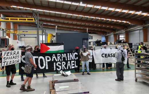 المتضامنون أغلقوا فرع الشركة في مدينة بريسبان الأسترالية، حيث تقوم Ferra بتصنيع المكونات الرئيسية للطائرة F-35 الضرورية للإبادة الجماعية التي يرتكبها الاحتلال الإسرائيلي في فلسطين.