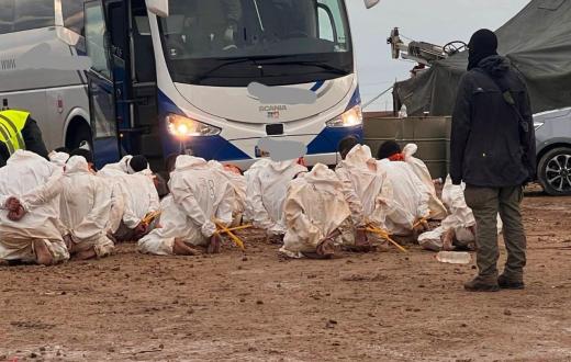 أجبر الجنود الصهاينة، المعتقلين على ارتداء مآزر بيضاء، وهم معصوبي الأعين وحفاة الأقدام وأرقامهم مكتوبة على ظهورهم. وقال فريق "سي.أن.أن"، الذي التقط الصورة، إنه غير قادر على تحديد المدة التي قضاها الرهائن بهذه الحالة غير الإنسانية، لأن الجنود أمروه بمغادرة المنطقة بعد رؤيته.