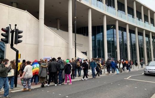 تجمع عشرات الطلاب أمام اتحاد طلاب جامعة كارديف في ويلز استجابة لنداء “يوم عمل لدعم فلسطين”، حيث اتهموا الاحتلال الإسرائيلي بالإبادة الجماعية وقتل الأطفال مطالبين بفرض وقف إطلاق النار.