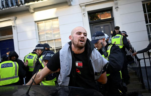 بمزاعم “الكراهية والتحريض على العنف” ألقت الشرطة البريطانية القبض على المشاركين الـ 12 في المليونية التي قدر عدد حضورها بأكثر من 250 ألف مشارك، ووصلت حتى محيط سفارة كيان الإبادة الجماعية في لندن.