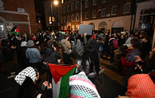 شنت إدارة الجامعة وأمنها مداهمة على مكتب اتحاد الجامعات والكليات في جامعة كوين ماري من أجل إزالة الملصقات التي تعبر عن تضامنها مع فلسطين بدعوى أن لها "تأثير تقشعر له الأبدان على حرية التعبير".