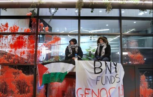 النشطاء طالبوا مكاتب البنك (BNY)، بإنهاء استثمارها البالغ 10 ملايين جنيه إسترليني في أكبر شركة أسلحة إسرائيلية، إلبيت، التي تنتج الأسلحة في أربعة مصانع في بريطانيا. وقالت حركة فلسطين إن الإجراء تم حيث كان من المتوقع أن تقوم جوان كاش، كبير المسؤولين التنفيذيين في البنك، بزيارة المكتب.