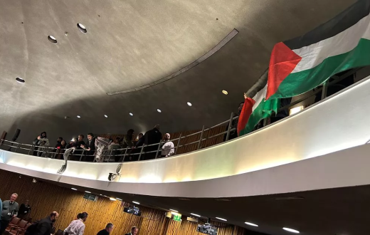 توقف اجتماع المجلس في تينيسايد البريطانية للمرة الثانية خلال ستة أسابيع بعد أن عطل المتظاهرون المؤيدون لفلسطين الإجراءات بعد حوالي 30 دقيقةمن بدء الاجتماع. ورفع المتظاهرون العلم الفلسطيني وهتفوا "وقف إطلاق النار الآن" و"عار عليكم" قبل أن تفرقهم الشرطة.