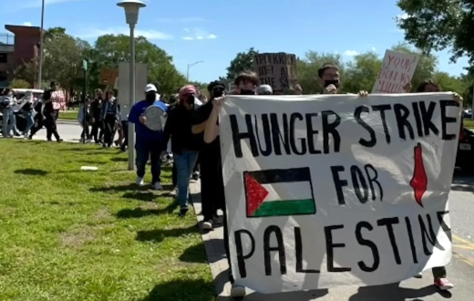 مع اكمالهم 17 يومًا من الإضراب المتواصل عن الطعام، دعا طلاب جامعة جنوب فلوريدا إلى مشاركتهم في فعاليات السيطرة على اجتماع مجلس الشيوخ يوم الثلاثاء القادم الموافق 9 أبريل، وإعلان الاعتصام المفتوح حتى سحب الاستثمارات الجامعية بالكامل من كيان الاحتلال.