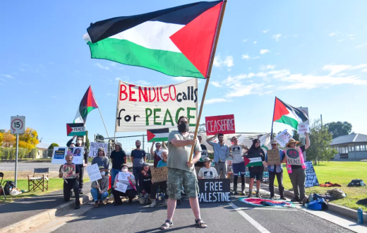 في إطار الحراك العالمي الذي يستهدف التأثير بشكل اقتصادي، أغلق متظاهرون متضامنون مع فلسطين مدخل منشأة تاليس الفرنسية لتصنيع الأسلحة في بنديجو بولاية فيكتوريا بسبب علاقاتها مع الاحتلال الإسرائيلي، كما شددت الشرطة من وجودها تخوفًا من تطور مجريات الأمور.