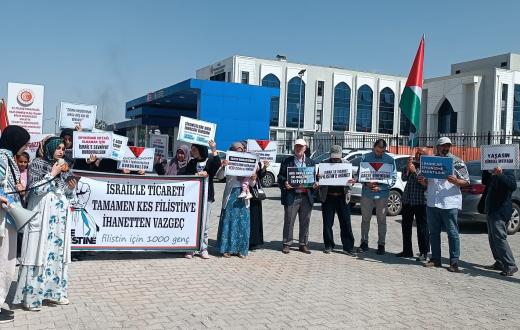 الوقفة الشبابية تجمعت أمام المديرية الإقليمية لوزارة التجارة، وتأتي الوقفة بعد نحو أسبوع من قرار الوزارة التركية بتقييد الصادرات إلى “إسرائيل” ويشمل ذلك 54 منتجًا، منها الإسمنت وحديد الإنشاءات والفولاذ المسطح والرخام والسيراميك.