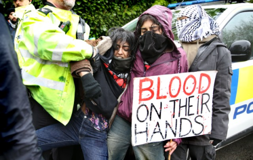 ألقت شرطة نيويورك القبض على المتضامنين مع فلسطين أثناء حصارهم لمصنع الأسلحة الموجود على أراضيهم رفضًا للمشاركة بالإبادة الجماعية التي ينفذها الاحتلال الإسرائيلي بحق الفلسطينيين، ورد آخرون على الاعتقالات بمحاصرة سيارة الشرطة مع المعتقلين بداخلها.