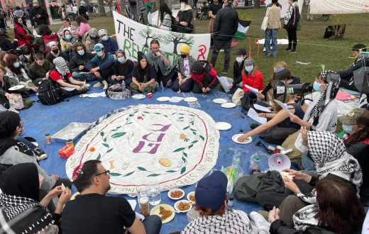 ونام بعض الطلاب في المخيم طوال الليل، بينما غادر آخرون وعادوا في الصباح. وحملوا الأعلام الفلسطينية ولافتات كتب عليها "ماكجيل تمول الإبادة الجماعية" و"ماكجيل، يداك ملطختان بالدماء".