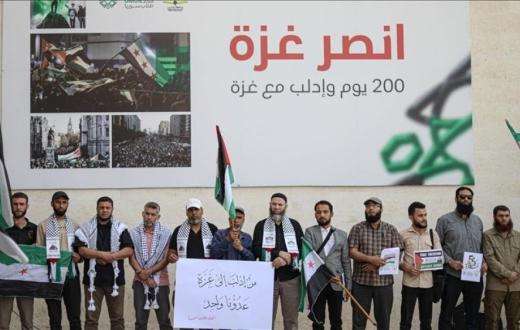 عبّر طلاب جامعيون في محافظة إدلب شمال غربي سوريا عن دعمهم لفلسطين في إطار الحركات الطلابية الداعمة لمقاومة غزة في العالم. وحمل طلاب جامعة إدلب، لافتات تحمل عبارات من قبيل "من إدلب إلى غزة.. عدونا واحد"، و"العزة والكرامة لكل أحرار العالم الذين يقفون مع غزة ضد آلة القتل والإبادة".