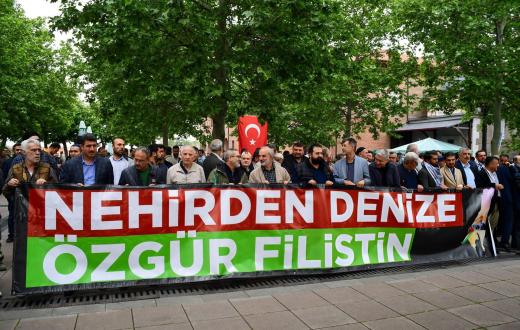 تظاهر عشرات الأتراك والمتضامنين مع فلسطين في فناء مسجد حاجي بيرم في أنقرة حاملين لافتات ضد الاحتلال الإسرائيلي وحرب الإبادة التي يشنها على غزة، وأخرى تطالب بإعطاء الفلسطينيين حقوقهم الإنسانية والتاريخية.
