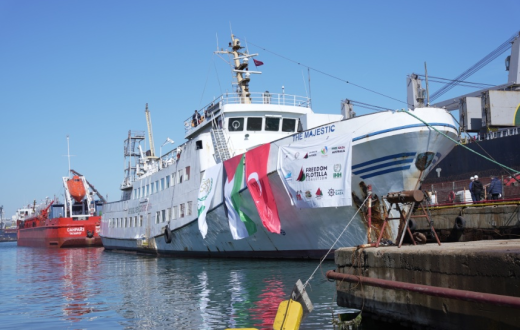 وتُبحر السفينة حاليًا قبالة سواحل جزيرة كريت اليونانية، في إطار مساعيها لكسر الحصار الإسرائيلي المفروض على القطاع. وأوضح المتحدث الإعلامي باسم جمعية "مافي مرمرة"، أحد منظمي الأسطول، إكرم كوبلاي قره د