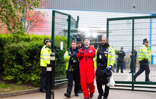 اعتقلت الشرطة البريطانية سبعة من أنصار حركة فلسطين بعد مهاجمتهم مصنعًا لشركة إلبيت الإسرائيلية يعمل على تصنيع الطائرات بدون طيار التي تشارك في الحرب على غزة، وقد سكب المتضامنون الطلاء الأحمر في أنحاء المنشأة العسكرية كناية عن تلوثها بدم الأبرياء، قبل أن يتم اعتقالهم.