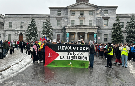قالت المنظمات الطلابية في جامعة ماكجيل، إن فعالية حصار منزل مديرة الجامعة، جاءت ردًا على مواصلة إدارة الجامعة تجاهل مطالب الحراك الطلابي الداعية إلى سحب الاستثمارات من الشركات المتورطة في الإبادة الجماعية.
