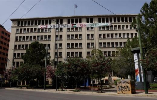 علق موظفون بوزارة التنمية اليونانية، لوحة ضخمة عليها علم فلسطين على مبنى الوزارة في العاصمة أثينا، وتضمنت اللوحة إلى جانب العلم الفلسطيني عبارة "أوقفوا المذبحة،الحرية لفلسطين"؛ وقالت النقابة في بيانٍ لها: "علقنا هذه اللوحة في المبنى الذي نعمل فيه لتوجيه رسالة تدين الإبادة الجماعية المرتكبة من قبل إسرائيل"، كما طالب البيان النقابة بوقف دعم الحكومة اليونانية للاحتلال؛ وطالب موظفو وزارة التنمية أيضًا بسحب الفرقاطة "HYDRA" التابعة للقوات المسلحة اليونانية المشاركة في مهمة "أسبيدس" للاتحاد الأوروبي في البحر الأحمر، وأشاروا إلى أن تكلفة عملها في المنطقة تبلغ 500 ألف يورو يوميًا.