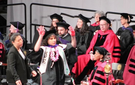 قام طلاب كلية الحقوق بجامعة نورث إيسترن الأمريكية بطلاء أيديهم باللون الأحمر أثناء حفل تخرجهم تضامناً مع آلاف الفلسطينيين الذين ارتقوا في قطاع غزة على يد قوات الاحتلال الإسرائيلي، وتنديدًا باستمرار حرب الإبادة منذ 8 أشهر على مرأى ومسمع العالم.