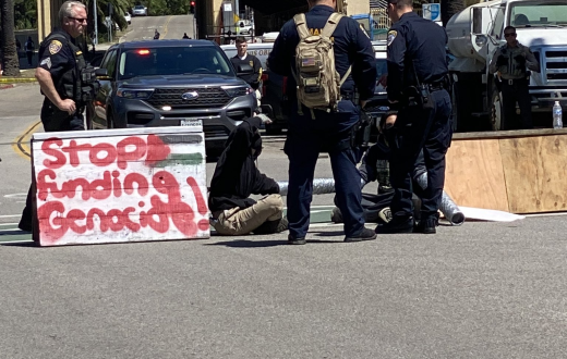 اعتقلت الشرطة الأمريكية 8 متظاهرين مؤيدين لفلسطين بعد إغلاقهم ومحاصرتهم جامعة كال بولي في منطقة سان لويس، ونشرهم حواجز خشبية في ممر المشاة في شارع كاليفورنيا وطريق الحرم الجامعي.