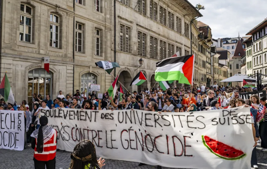 تناوب طلاب من جامعة لوزان، ومن كلية الفنون التطبيقية في لوزان (EPFL)، وغيرها من الجامعات الناطقة بالفرنسية على التحدث خلال مظاهرة حاشدة مطالبين بمقاطعة أكاديمية للجامعات الإسرائيلية، وسار النشطاء حاملين الأعلام الفلسطينية وواضعين الكوفية على أكتافهم وسط المدينة، مرددين “تحيا، تحيا فلسطين” و”في فلسطين الإنسانية هي التي تُغتال”.