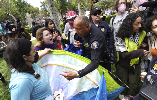 اتهمت إدارة جامعة كاليفورنيا في بيان إداري 55 طالبًا جرى اعتقالهم خلال فض الشرطة للاعتصام الطلابي داخل الجامعة في 2 مايو الجاري بـ “انتهاك سلوك الطلاب”، مهددة باتخاذ “عقوبات خطيرة” بحقهم، تشمل حجب الشهادات وعرقلة تخرجهم في حال عدم خضوعهم لمجلس تأديب داخل الجامعة.
