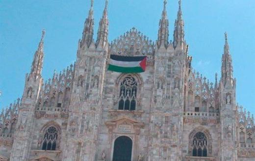 قال عضو مجلس مدينة يوروبا فيردي، كارلو مونجوزي، عبر حسابه على فيسبوك، إن العلم الفلسطيني رفع صباح اليوم على واجهة كاتدرائية ميلان، وأوضح مونجوزي أن المبادرة "لقيت ترحيبًا بتصفيق الحاضرين في الساحة أمام الكاتدرائية، وجدير بالذكر أن إيطاليا لا تعترف رسميًا بدولة فلسطين.