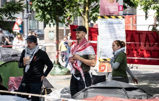 طالب متضامنو فلسطين في مخيم الاحتجاج في ساحة مجلس مدينة كوبنهاغن الدنماركية، حكومة بلادهم بفرض حظر أسلحة على الاحتلال الإسرائيلي بسبب استخدامها بارتكاب إبادة جماعية في غزة، موضحين أنهم لا يقبلون أن تتورط بلادهم بهذه الجريمة التي تحاكم فيها “إسرائيل” وداعميها أمام محكمة العدل الدولية.