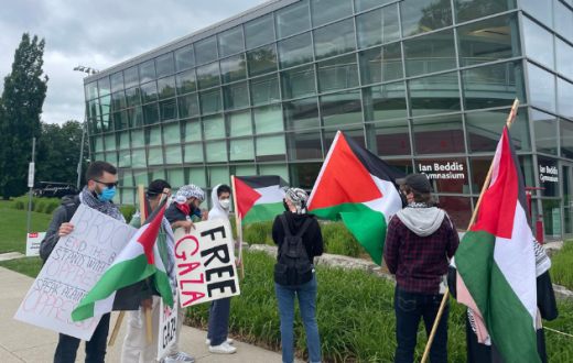 مع بدء حفل التخرج في جامعة بروك الكندية، نظمت مجموعة من المتظاهرين المؤيدين للفلسطينيين مسيرة صامتة في حرم الجامعة، حاملين لافتات وأعلام فلسطينية خارج صالة إيان بيديس للألعاب الرياضية، كما احتجوا على إصدار رئيس الجامعة بيان يدين حماس وهجوم طوفان الأقصى في أكتوبر الماضي.