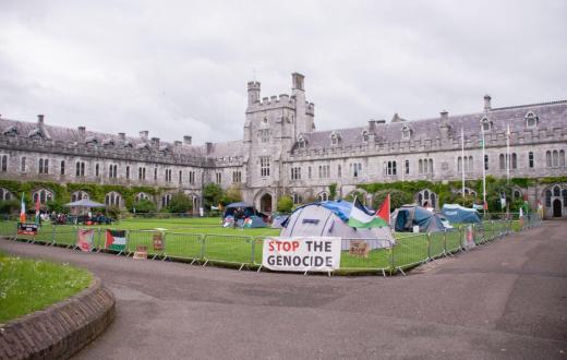 اعتقلت الشرطة الأيرلندية طالبين من كلية كورك بزعم مخالفتهم النظام العام في حرم الكلية بعد احتجاج قام به طلاب مؤيدون للفلسطينيين، حيث أُقيم الاحتجاج لمعارضة زيارة تانايست مايكل مارتن إلى معرض غلوكمان في الجامعة لدعمه الإبادة بغزة.